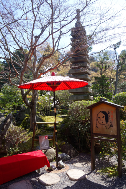 這裡的路旁也沒有現代鐵灰高樓擾景,就是很富著鄉情的木造矮舍,即便化成手工藝品或燒烤雜貨店,都不甚突兀,反覺得是很理所當然的生活逸趣。我在這兒發現「Yojiya」開的茶房,以吸油面紙美妝產品聞名的它居然另闢蹊徑,頗令人好奇。走了進去,彷彿為貼合此地幽情,院落以假山矮樹舖展,竹欄短橋引人轉遊,石燈籠伴著層疊高竄石塔,張揚艷傘在紅布矮凳邊成了聚焦風景。但當於廳口窺看,排隊的人眾湧雜,行程滿檔的我自無法得知茶食是否也如院色令人感到誠意了。