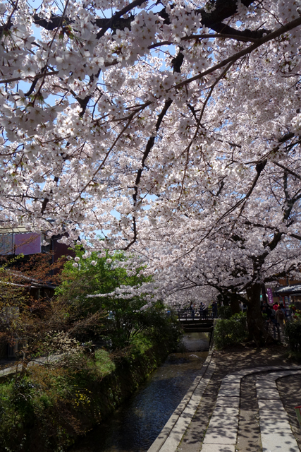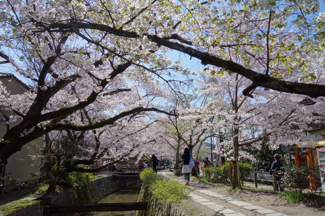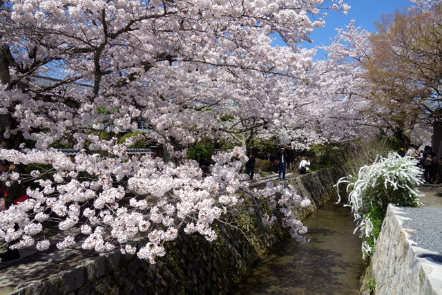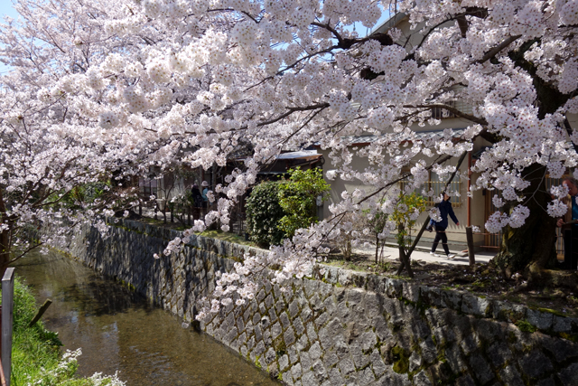 所謂的「哲學之道」是「銀閣寺」至「若王子神社」之間的一條兩公里行道,畫家「橋本關雪」夫人沿渠植櫻,一時的心念卻在光陰流轉後,成了每年初春延續雪色的綺麗之景,同樣的淨柔,卻替去了寒涼,轉綻著明朗朝氣。而京都大學「西田幾多郎」教授被此景所引,總喜沿著溪徑,在花蔭下思索哲學道理,故後來這路便被風雅地賦予「哲學之道」之名。