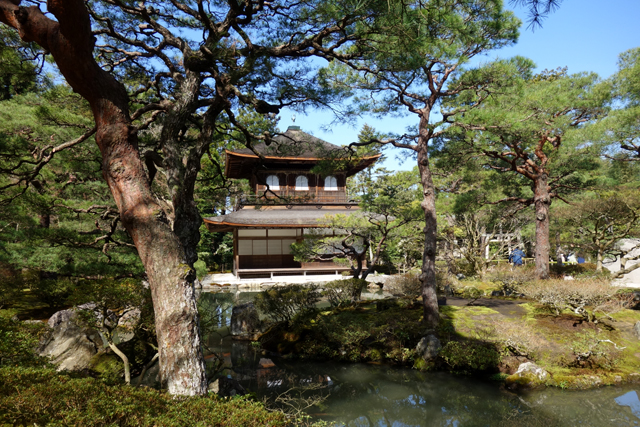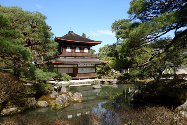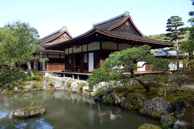 佛堂內敬奉著觀音,所以「銀閣」原名其實是「觀音殿」,至於為何更替成如此難以理解的稱呼,也眾說紛紜。有說法為因著經費短缺,本該綴覆其上的銀箔便隨之作罷,亦有人浪漫地懷想,相對於外顯的金,銀是種更為內斂的存在,故藉著禪宗修行,樸拙的木色自有其曖曖含光之美。