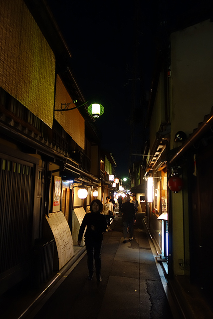 根據手上地圖,我在接鄰「鴨川」的「先斗町」轉了彎,巷子一眼望去極度狹窄,不過老式的町屋建築、間或點綴的橙暖燈籠、高低錯落的白熾店招,卻現顯著即便走過幽幽歷史依舊不墜的盛景。