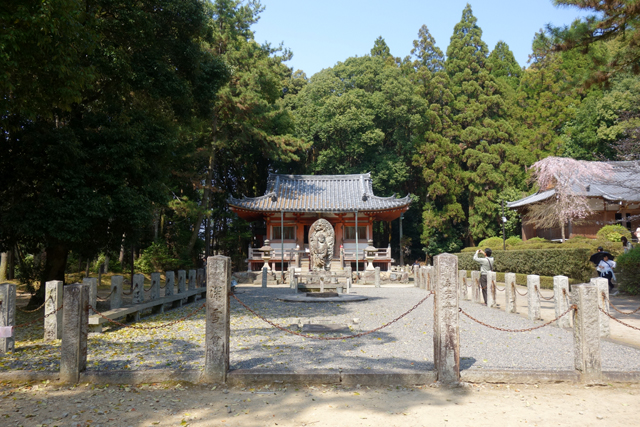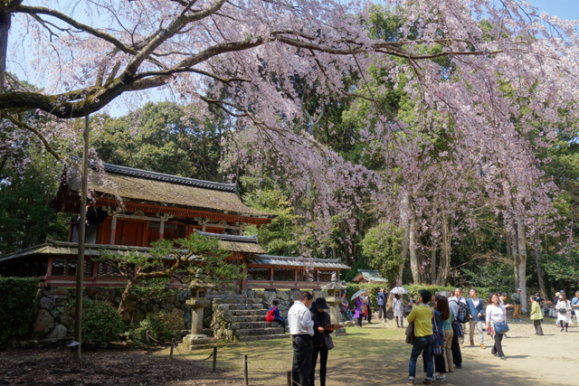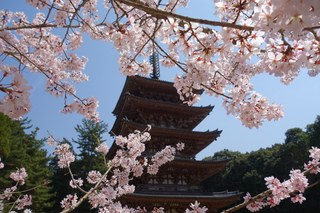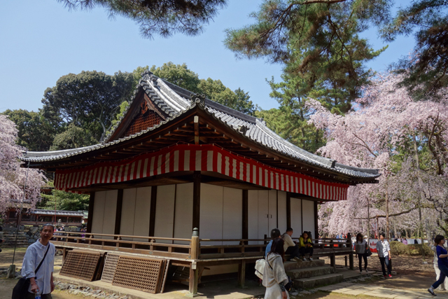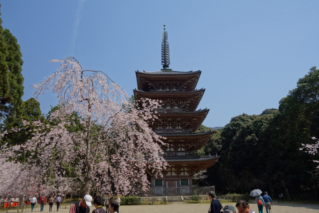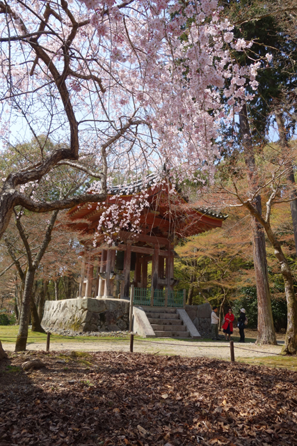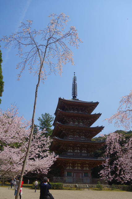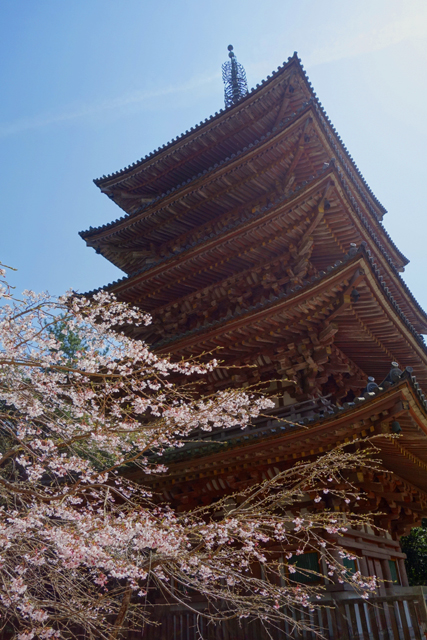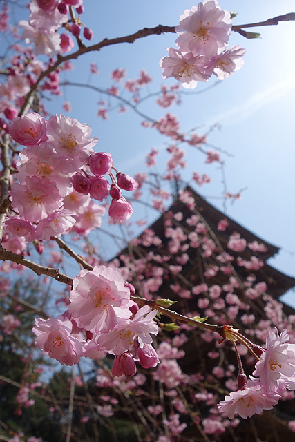 孤秀獨立的它本就有其風姿,在此春之時節,又因邊際環植的櫻樹添了清雅淡妝。在行走間望去,便像別上花釵、持著團扇,原本的嚴肅威儀都柔媚起來。我趨前至塔下揣想內部之景,據說初層精微彩繪著「兩界曼陀羅」及「真言八祖」,儘管輪廓已斑剝,仍是日本秘教繪畫的始祖,有其珍貴歷史定位。