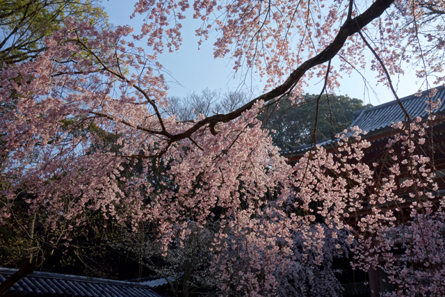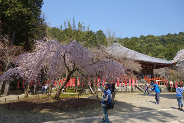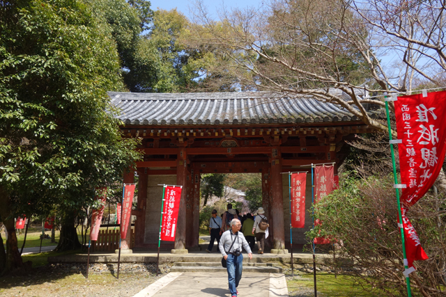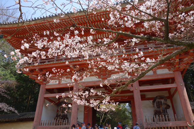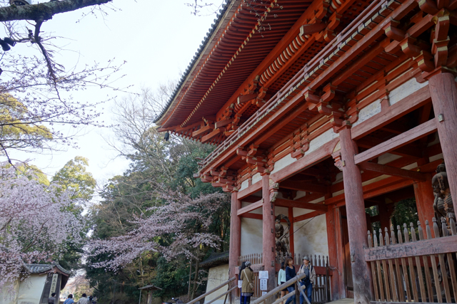 而逛過「醍醐寺」的「靈寶館」與「三寶院」,還有區「伽藍」在參道之末,我一路走了過去,來到清早入寺也曾立望一陣的「仁王門」。當時這兒幾棵櫻枝茂盛展露歡顏,在各院未開前聚起早來的攝影客,現今人潮雖已往各處流散,依舊能見不少行眾慢下腳步,怔然、抬首、感受花姿之嬌艷。