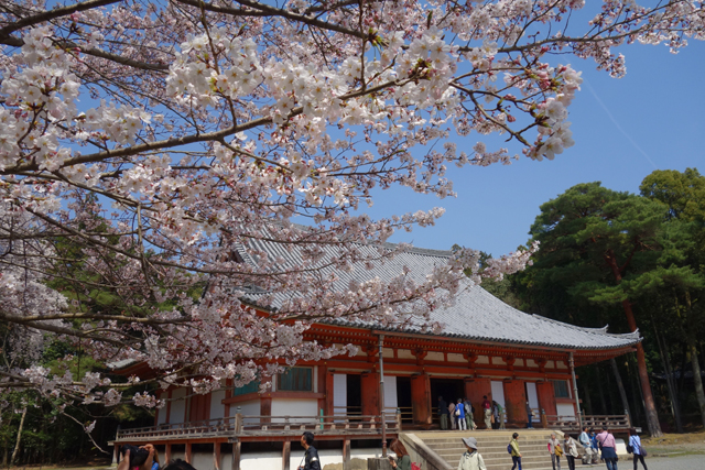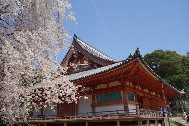 此區的隔鄰也是塊廣場,以鐘樓領著粉色櫻枝環繞末處「金堂」。「金堂」最初為「釋迦堂」,建於「醍醐天皇」時代,比「五重塔」略早。根據資料原本還有經堂、環廊、中門,以南北軸線劃過「五重塔」至另端的南門。