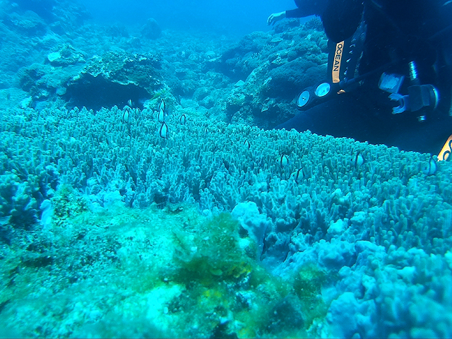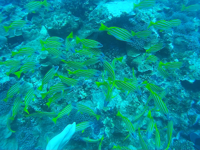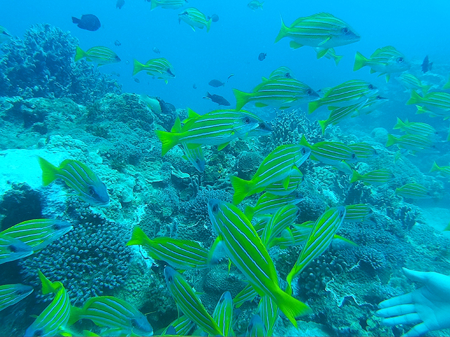 而且沒多久就可以看到很多漂亮小魚在礁石旁玩耍了。