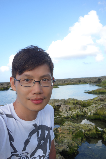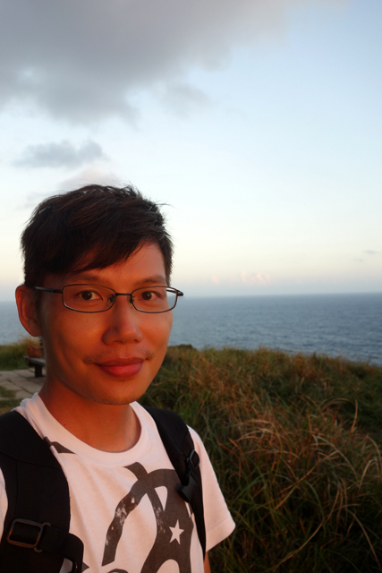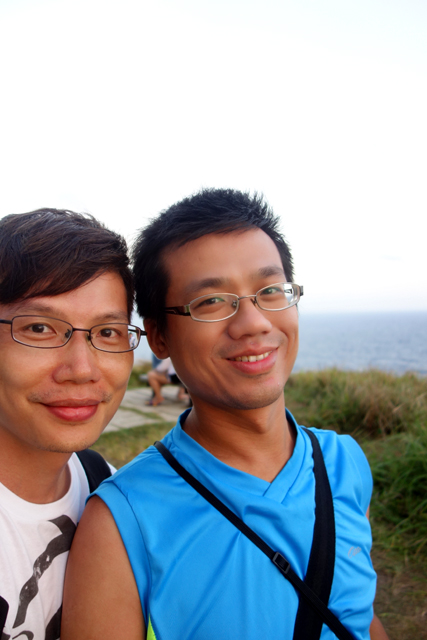 手太短,想自拍但又拍不進後面的山海之色,唉….