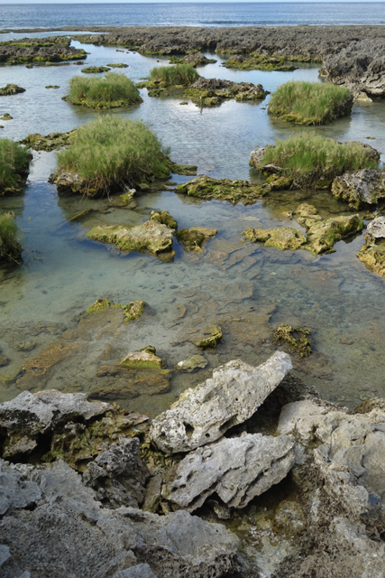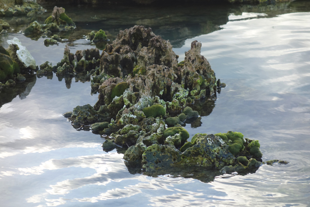 果然當往海邊走,那破碎礁岸包圍的水色超漂亮的啊,