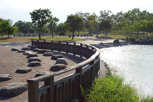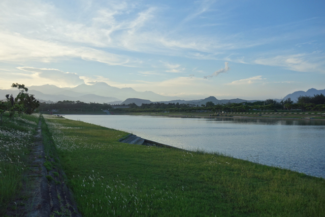 琵琶湖很詭異,被中間的步道切成兩段,比較遠的這區水面被水草佔據大半。