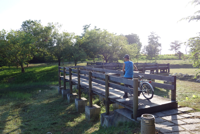 某人說想繞湖看看,於是就把腳踏車騎去環湖石板道。