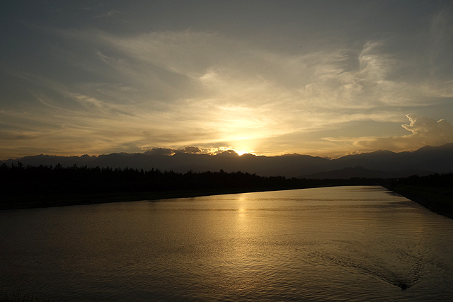 默默放棄跟隨我們的腳踏車,消失在夕陽裡。