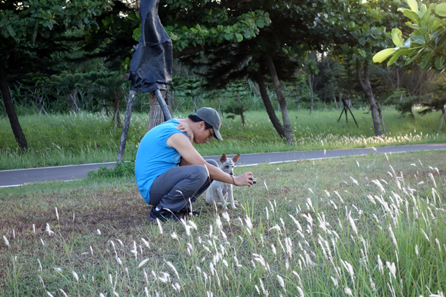 但小王很不死心地黏著,大概也好奇為什麼有人可以拍路邊野草拍得這麼專注開心。