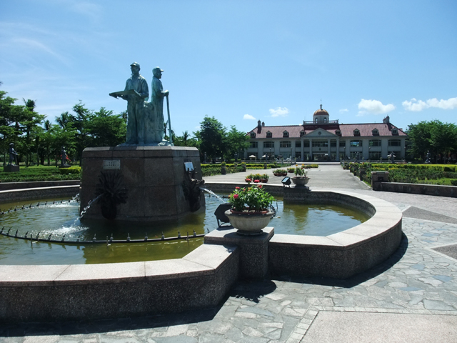 入口處的花園應該算是法式風格吧,有修剪整齊的花圃跟成列雕像作裝飾。