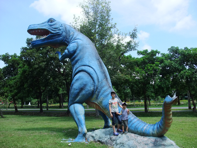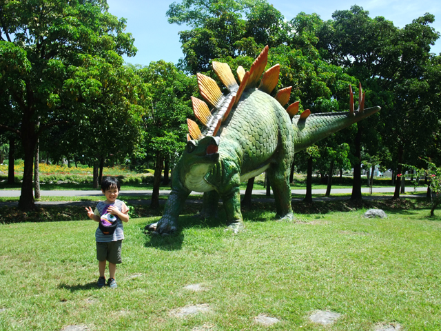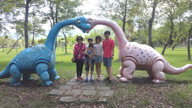 拍完恐龍後,懶惰的姊夫就不想動了,美其名帶小朋友去玩水,