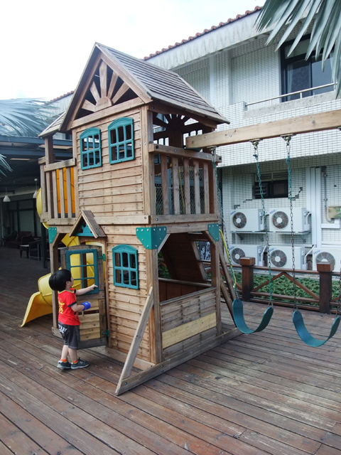 陽台還有小小的兒童遊樂設施,讓懶得動的父母偷個懶、放生小孩。