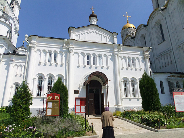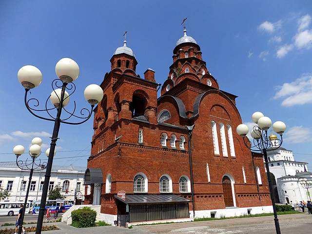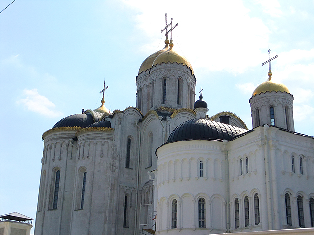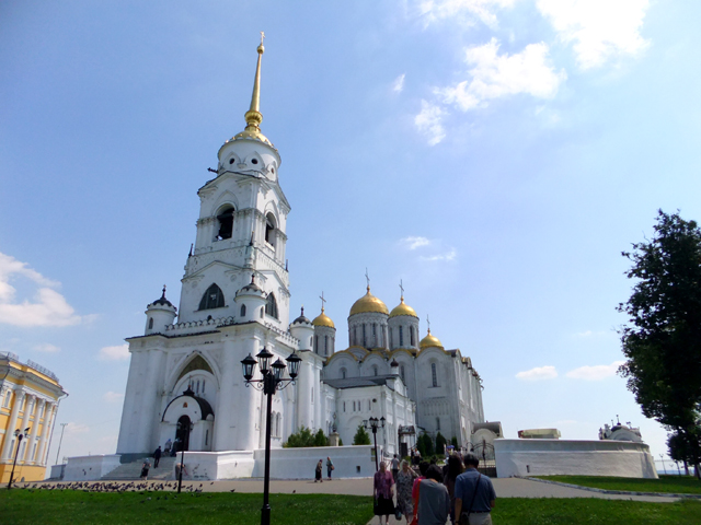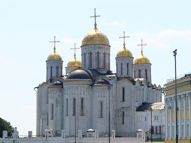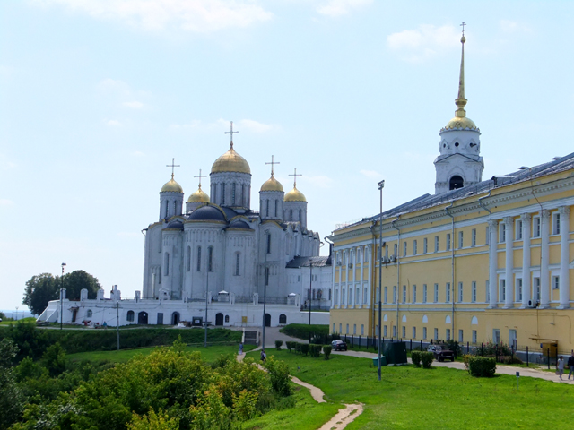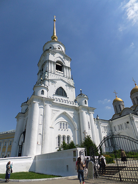 鐘塔之後還有兩棟建築相連,中間低矮者是「聖喬治教堂」,長窗交併、頂弧躍連,清雅地與山牆組合成立面,搭襯纖秀冠頂。它與鐘塔的年代稍晚,皆為十九世紀所增築,而真正的古建物於末,是可追溯至十二世紀的「聖母升天大教堂」。它由大公「安德烈‧博戈柳布斯基」(Andrey Bogolyubsky)策劃築建,此人也是公國強權的奠基者,於那年代呼風喚雨,為一代梟雄。