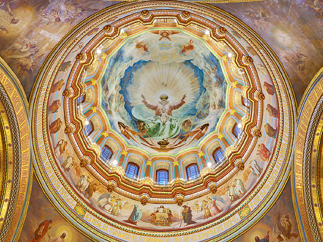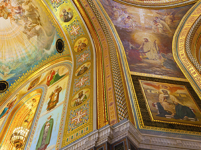 然這座高達百尺,可容萬人的的全俄最大教堂卻非原物,而是毀後再建,有著斑斑滄桑歷史。西元1812那年,因逼退拿破崙入侵,舉國歡騰,「亞歷山大一世」起意築建教堂以資紀念。不過原先帶著共濟會符號的新古典設計還未成形,便被下一任的「尼古拉一世」推翻,改以君士坦丁堡「聖索非亞教堂」為典範,融合拜占庭架構與俄式雕花,成了目前所見形貌。