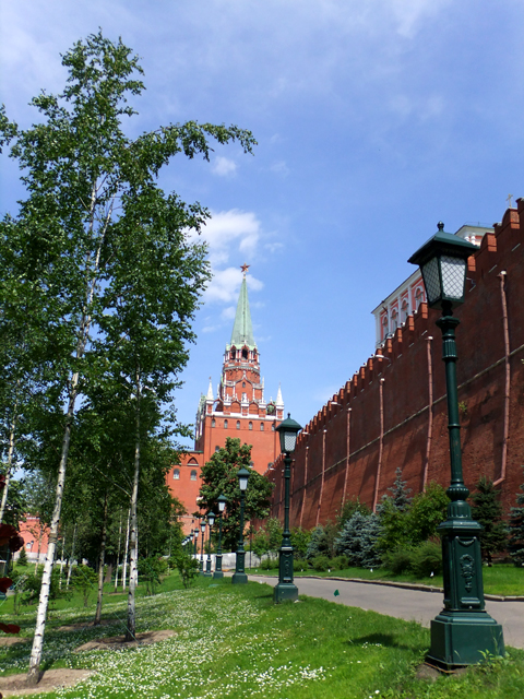 行過了「紅場」,於「杜蘭朵餐廳」稍歇,在莫斯科行程最末的這個下午,我終於要踏進名聞遐邇的「克里姆林宮」(Kremlin)。嚴格說來,此字僅是城心堡壘之意,在許多俄國都市皆有這樣名稱的建物,不過現今倒也沒多少人在乎,於遊客心中早與莫斯科宮城形象疊合一起。
