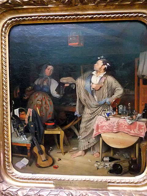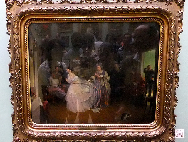 不過講解才聽了一半,我注意力卻被繪者一旁的另個作品引去。那也是張大幅畫作,紛擠著人群。當時定望之餘只匆亂搶拍個照,卻讓我體認了導遊的豐富學養,因出館後跟她雞同鴨講形容半天,居然還真問出了畫中主題,旅程最末幾天拿路邊教堂考她也都難不倒,頗令人佩服。