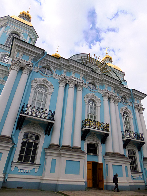 於是在不耽擱教堂行程的前提下,到手的就僅僅一小時半。這長短很尷尬,去遠的地方有風險,近處昨晚又皆行過,我想著原訂想去的「聖尼古拉海軍教堂」(St. Nicolas Naval Cathedral),估量著距離,各十五分鐘的車程、步程、來回,若能如此壓縮,或許尚有機會。因此當領隊一下令解散,我就快步轉過街角,一路衝回涅瓦大街。