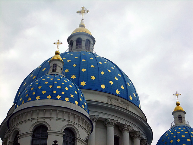 其實若時間更有餘裕,原本計畫裡還會再往南稍走一段距離,看看另座「聖三一伊茲麥洛夫斯基大教堂」(Trinity Cathedral),它以古老俄羅斯軍團為名,希臘神廟式的山牆柱廊為底座,再支著五個塔冠。用色雖然潔白簡單,但藍底綴星的頂帽卻有種童趣引人親近拜訪。