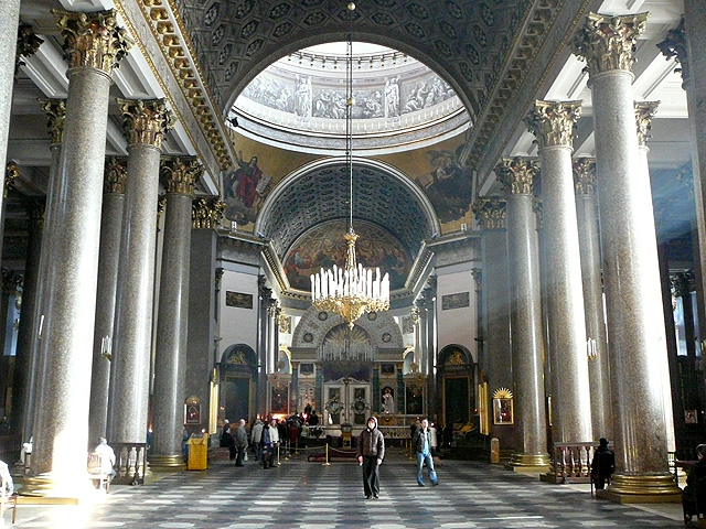 這兒之所以被稱作海軍教堂,是由於聖彼得堡臨海,有為數眾多的水手與海兵,故而砌立了教堂以海上守護者「聖尼古拉」為名。主廳雖看來低矮,但其實是因空間被切分為二,若有機緣往上,還能見到另一座擺放許多陣亡將士紀念碑的「主顯堂」。