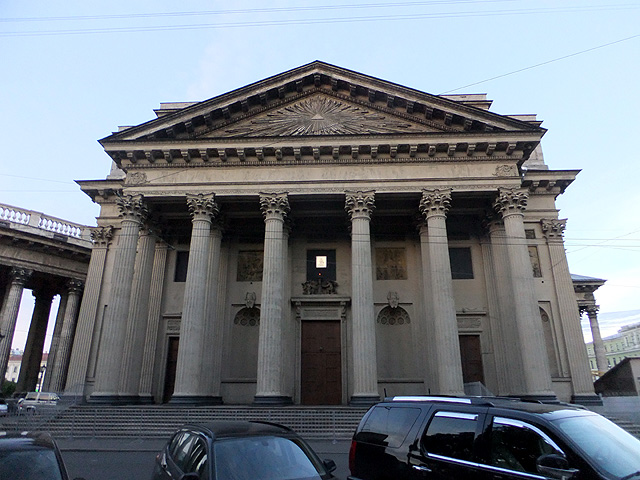 一路行過地鐵出口附近的商場,很容易便能見到教堂宏偉身姿現顯於街邊。其模樣與傳統東正教教堂大相逕庭,沒有五根洋蔥帽冠的塔柱,反而是孤立的一座天主教大拱頂矗立於山形簷上。不過單此形構恐稍嫌單調且失了氣勢,因此意欲統合東正教與天主教的「保羅一世」仿效梵蒂岡「聖彼得教堂」,以弧形包繞的柱廊將立面往兩側延展,宛如基督擁愛世人之雙臂。此外,由於祭壇擺位必須面東,朝街的北側門也因此有了兼具視覺震撼的外探廳廊。