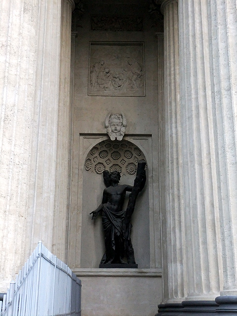 資料上有種說法,似乎原本設計方案裡,教堂四面都要外展如此弧廊。也有另個構想,在街的對側加添一座同樣帶有弧廊的對稱教堂,但這些規畫都因著經費、因著一些反對聲浪而作廢,然其實我還滿期待能見著這樣令人耳目一新的壯觀場面。