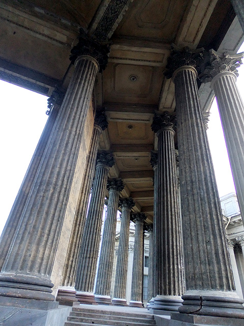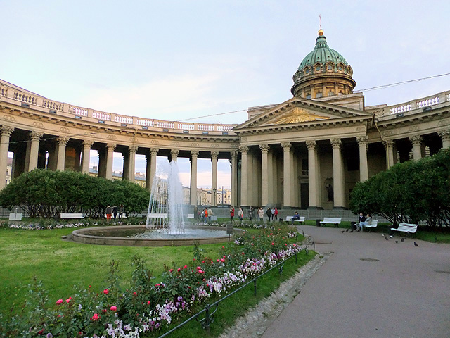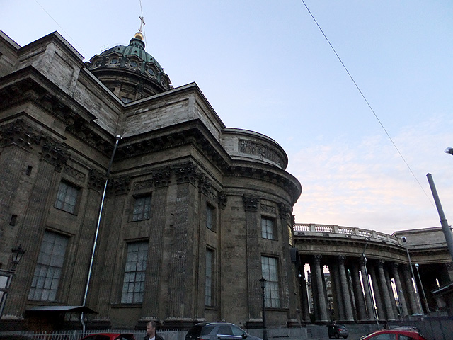 不過我沒往劇院那兒鑽去,而是朝「冬宮」方向走,目標是聖彼得堡的宗教中心「喀山大教堂」(Kazan Cathedral)。教堂名稱來由自「喀山聖母」,據說當年是位小女孩在聖母顯靈指示下,於喀山這地方發現了聖母聖像。而「喀山聖母聖像」曾多次回應信徒祈求,早年讓蒙古大軍不戰而逃,俄法戰爭時降下大雪將拿破崙軍隊凍死過半,二次大戰也同樣以寒氣封止德國飛機戰車,故而於俄羅斯人民心中極度神聖。