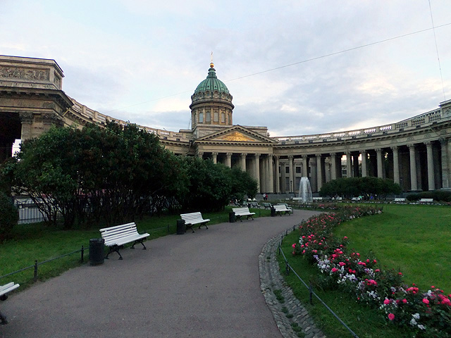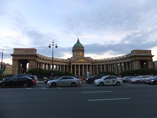 這回路線比較單純,只要數著七站,於藍綠線的交會口「Nevskiy Prospekt」下車,便是繁華的觀光勝地「涅瓦大街」。照旅行社表定行程,是會留一段白晝時光予我們在此踩逛採購。不過對我而言,採購的順位一向被放得很末,總覺得明亮天光應拿來觀訪,也趁日間教堂開放入內一探。所以便拿定了主意,利用午夜前的零碎餘閒來此作個概略瀏覽,屆時的採購時間則飄遠點去冒險。