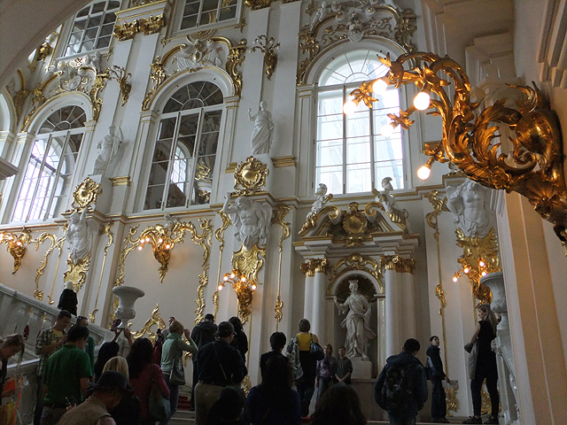 其實「冬宮博物館」也被稱作「隱士廬博物館」(Hermitage Museum),畢竟在方整的「冬宮」殿閣旁,還依序串上狹長的「小隱士廬」、北南拼組的「大隱士廬」與「新隱士廬」,最後跨過小運河連通「隱士廬劇院」。