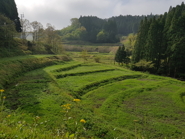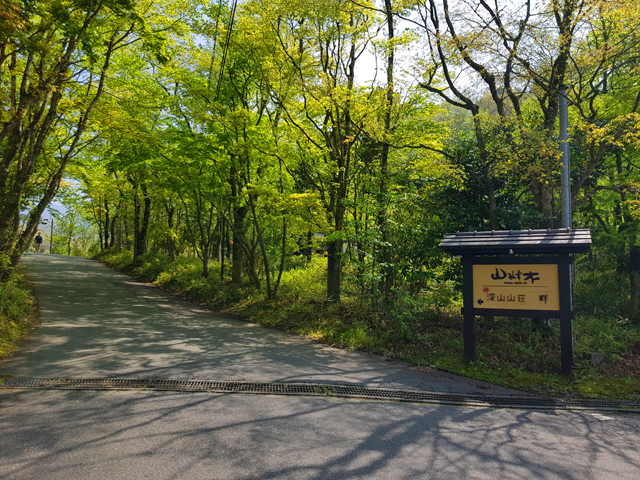 循馬路往深僻方向拐,晨風微涼,陽光和煦,步伐也因此變得輕快,走著走著,「山水木」的指牌隨岔路而現,這就是手形第二次要使用的地方了。它的老闆跟鎮心的「新明館」是同一位,可能覺得那裏地理位置過於限縮,闢不出他理想中的露天風呂,便另擇了眼前這塊地重新擘劃。轉了進去,左邊凹地散佈了好幾間房舍,某些還覆著茅葺頂,透著古意。本以為是某個在此農耕維生的小村落,後來才察覺是「山水木」的別館「深山山莊」,每棟都是擁有私人湯池的高級小屋啊。