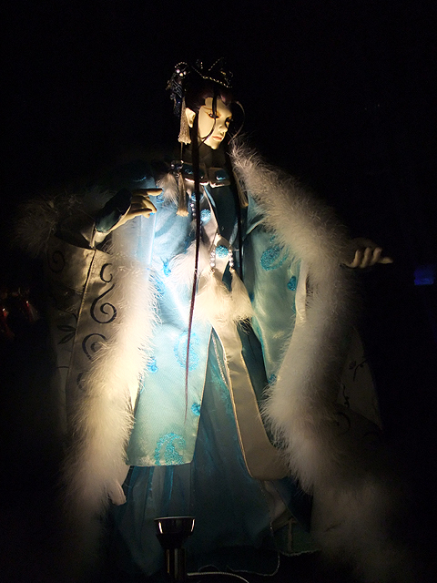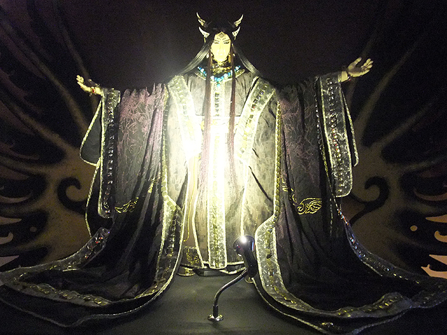 然後既然是魔界,可想而知又是搞成一片夭壽黑,然後用超亮燈光打在人偶臉上,