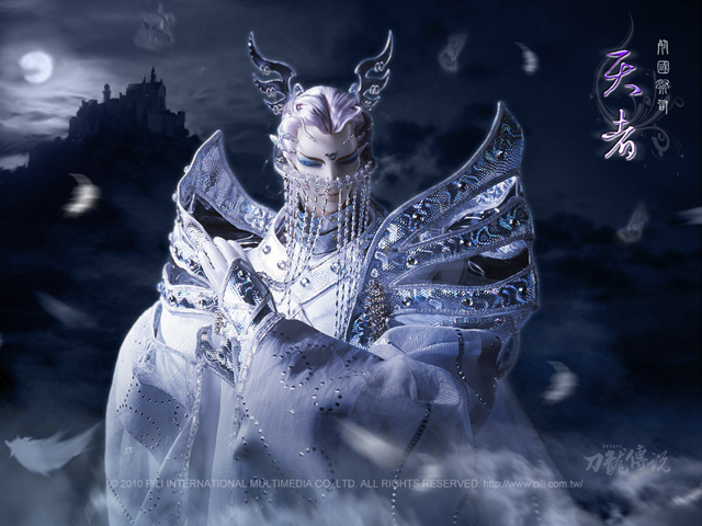當中一身白的為「天者」,眼睛因被奪去視力都是閉著的,頭冠為對開雙羽,
