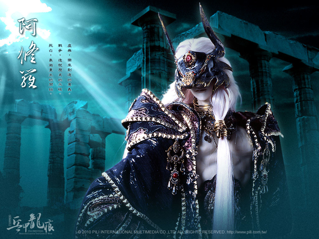 最右邊是戲分似乎很重的「阿修羅」,此處造形是戴著阿努比斯狗頭面罩的裸胸黑裝,