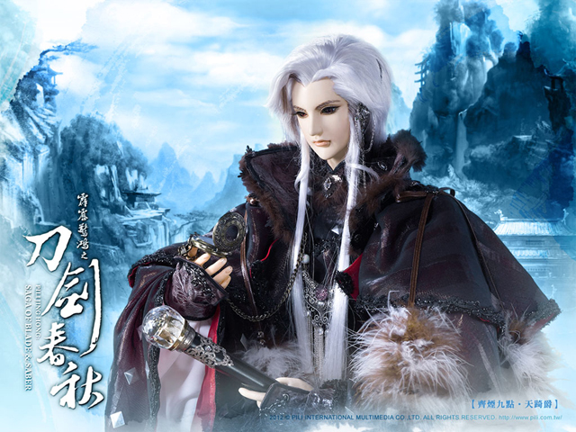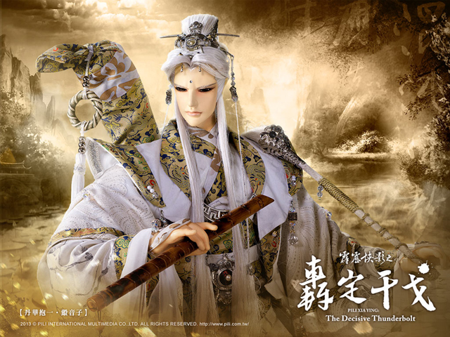 中者則轉為成熟剛毅的熟男面貌,頂著束髮帽冠,拂塵白袍鑲上淡褐綴邊。