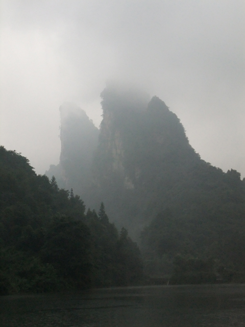 「金蟾含月」,導遊這麼指著。一處的嶺巔高低分叉為二,像隻巨蛙張嘴正欲從水面蹦躍而出。據說當對上特定時節之夜晚,便能見其吞咬一輪明月。而於白晝行動的我們自與此景無緣,但金蟾在這霧掩之時,卻更像修得了神元,正吐息著仙氣。