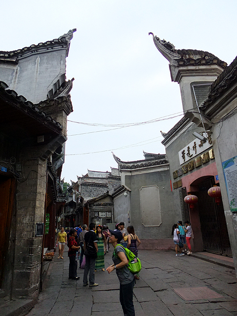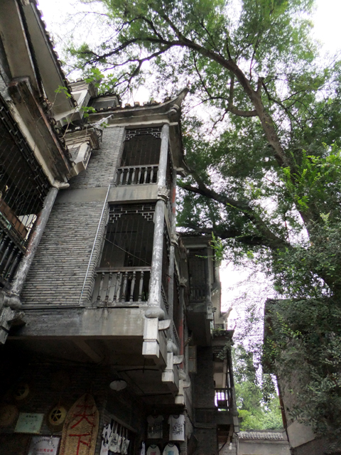離開「古城博物館」,大夥在小巷內繼續穿繞。樓房看似簡樸,但偶有外探頂閣綴著折曲欄柵,與另側綠樹枝枒交互搭生。當立於其下,仰首窺天,窄弄雖狹密,卻也勾描成谷崖,似乎接著便有鳥鳴輕聲婉轉,引來山嵐徐徐。
