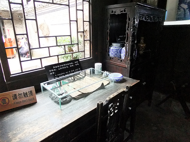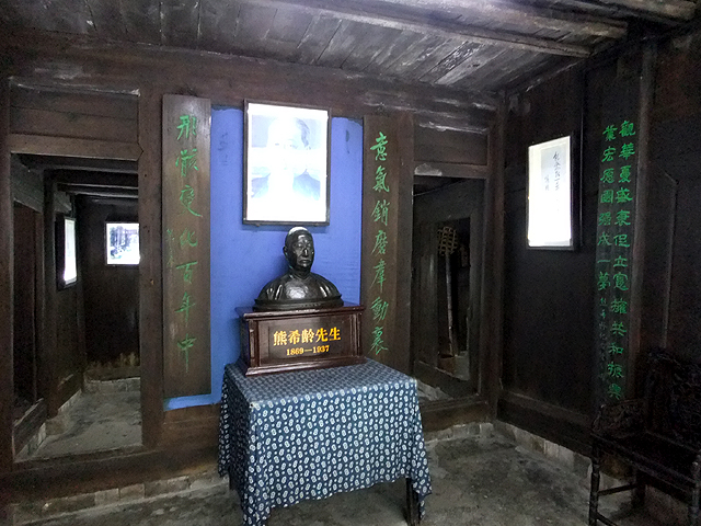 而後方老宅相較適才探訪過的「沈從文故居」,似又更殘破了些,由中庭望去,不太大的四合院裡門牆相當平實,踏進屋裡,也是一色毫無雕飾的桌几,臥床為淡素的墨架白簾,之後是積著沙塵的灶舍,可想而知,大夥隨意瞥瞥就轉出了。很令我好奇的是,資料上熊先生為清末官宦世家,似不該清寒若此,還是那只為時年轉換的滄桑?