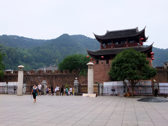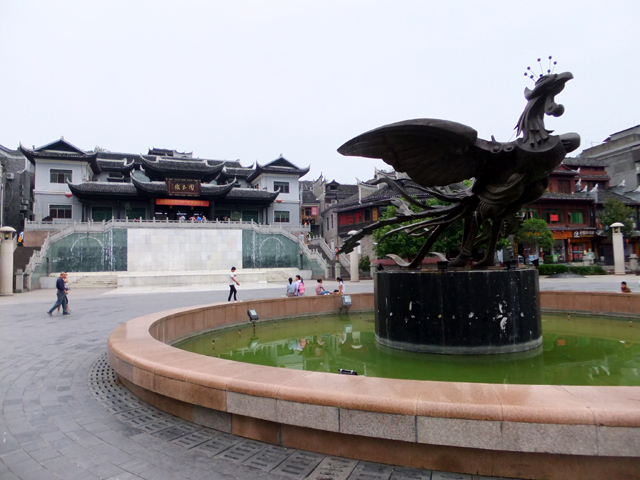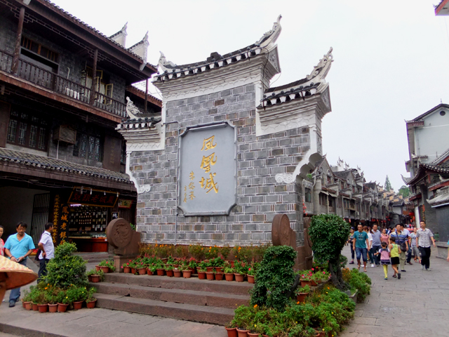 有了領隊的團體票,我們大爺般晃入閘口,幾番彎拐來到另個廣場,南方是古城西門,北面層疊盤踞的依地圖標示該為「朝陽宮」,但匾額上那龍飛鳳舞的三字卻不似。廣場中央應和地名立了座舞翼鳳凰,鳳凰飛羽翩然,自惹得大夥聚攏留影。而由此往東,便是古城核心區域。