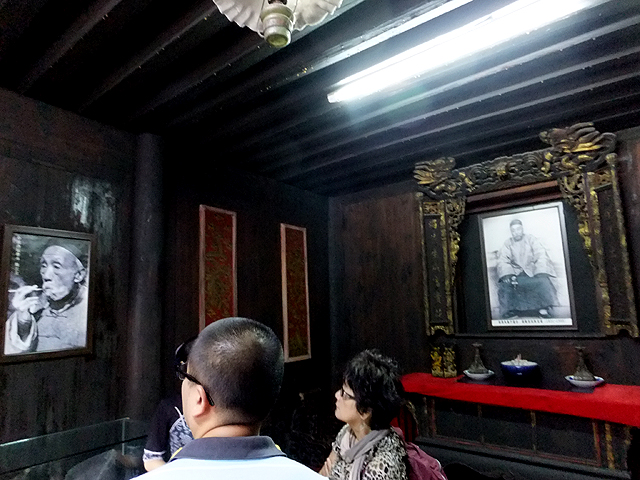 這老宅也包含道台衙門的組成部分,不過當踏進大門,倒也很難辨其佈局。一側是只有單層的「鳳竹廳」,可看到陳寶箴的官帽、遺物與家族成員照片。牆上猜測該是陳師曾的水墨暈彩,幾幅掛卷,快意揮灑筆觸,嶙峋嶺岩、蒼勁枝枒便躍然紙上。