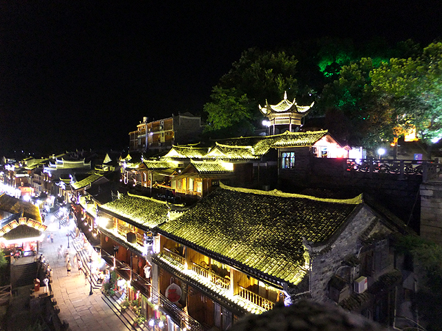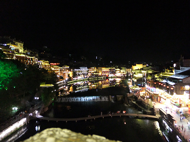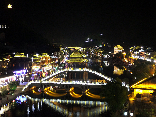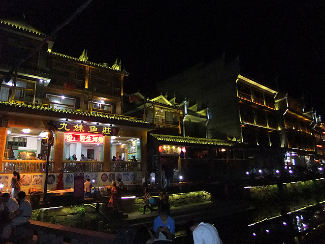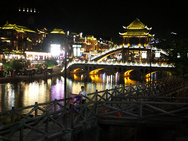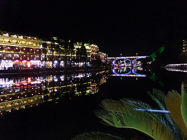 如此一路折騰,到達鳳凰也是夜幕臨降之時。惦記著小城夜裡可能的風華,行李安置好後,我就迅速溜至旅館樓下,研究須臾門口擺放的地圖,再跟櫃檯略微確認方向,便興奮快步往外探險。