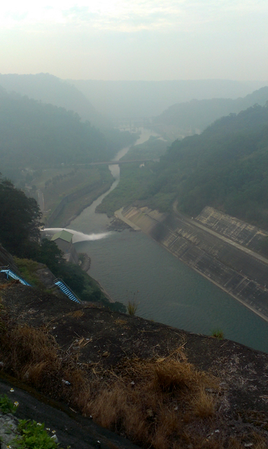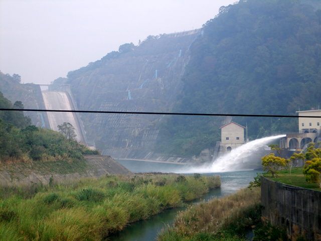 詭異的是若為洩洪卻不是從正面那巨大石堤(石堤也不見開口),