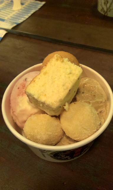 結果…「我們是用龍眼花跟烏龍茶調出的自製特別口味,吃了會有淡淡花香喔」,這解釋跟沒解釋一樣吧。 = =