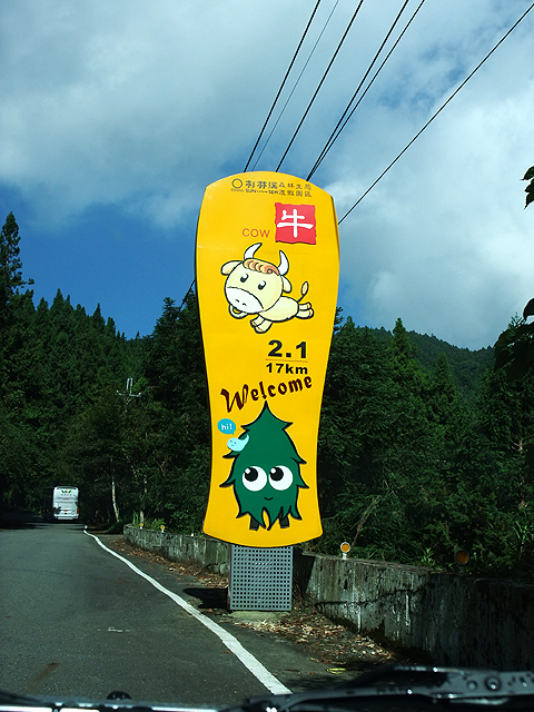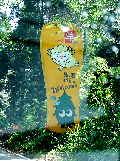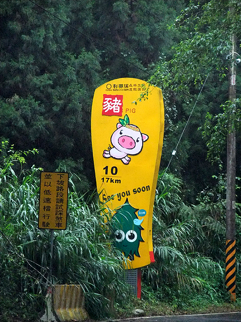 開去的路上,每個大彎都會湊個十二生肖的可愛警示牌,