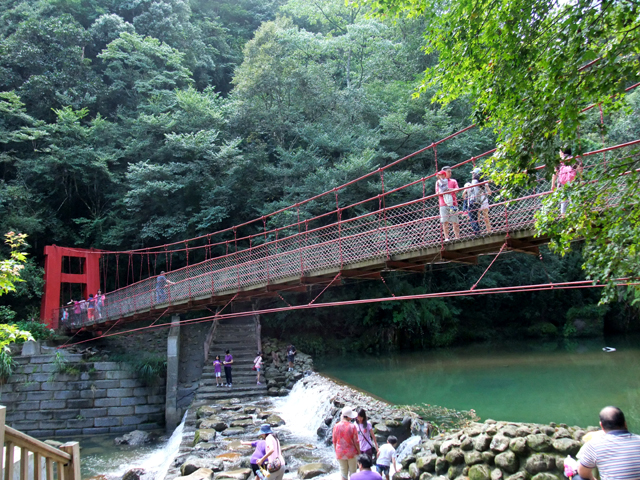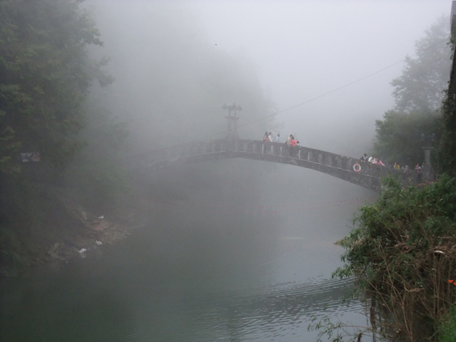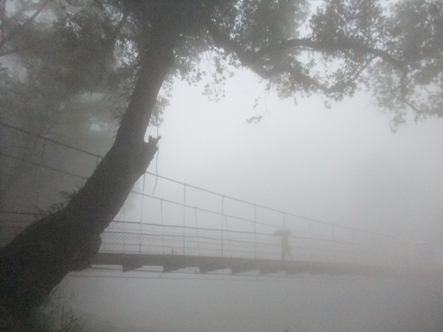 結果還真是霧裡看花,沿著溪走也不見溪面,走上吊橋只窺得半身,