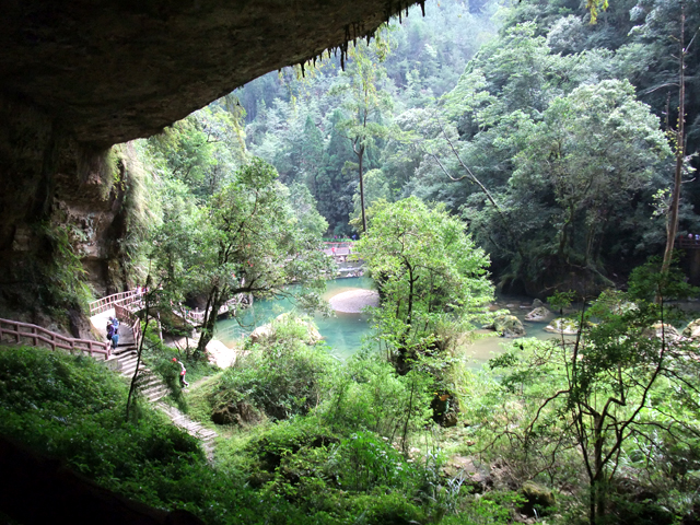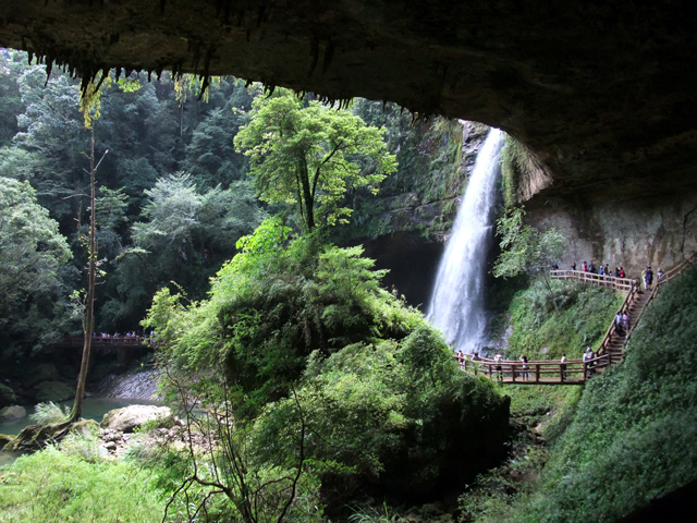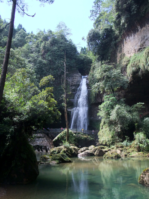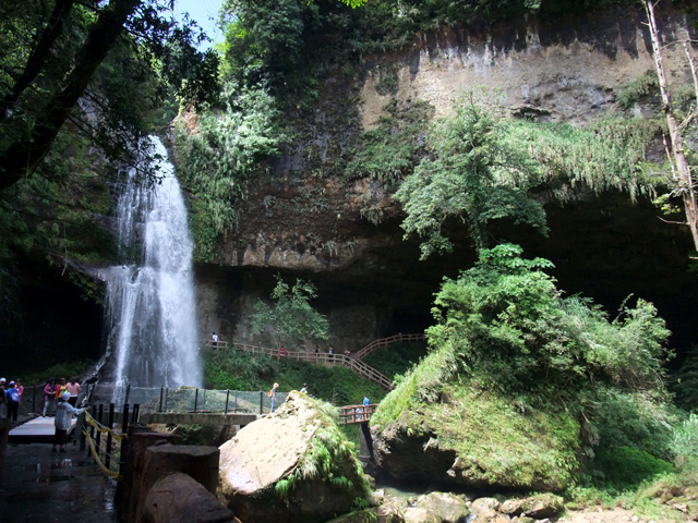 由裡可以瞥見垂掛而下的白練,跟池水間小島般的挺拔樹岩。