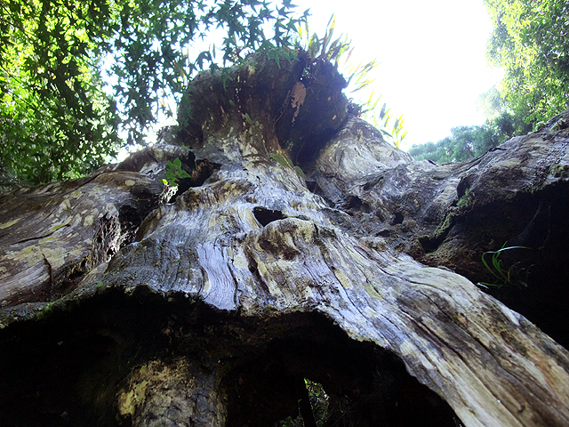被蝕空的樹心可容人探進仰望,只存幾片乾裂的皮殼兀自拼撐住本來面目。