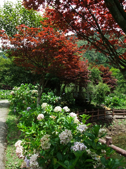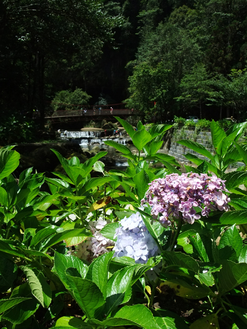 由於是繡球花季的尾聲,儘管不少花辦已開始凋萎,但還是將路邊點綴得繽紛。
