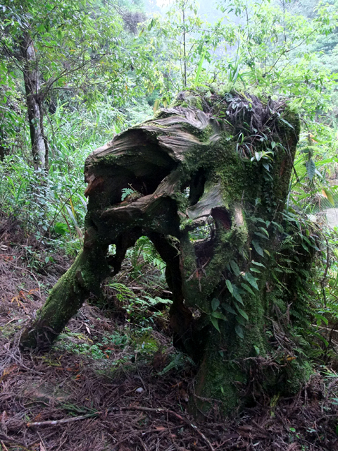 走在前途未卜的山徑,半路有個大概是神木殘跡的枯樹擋在前方,
