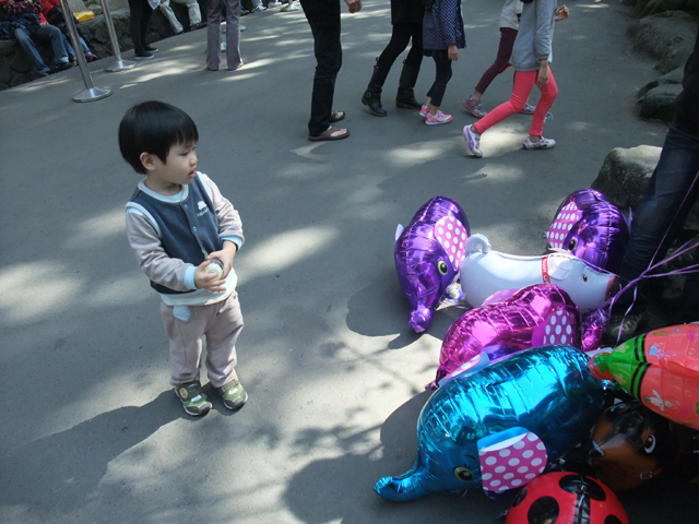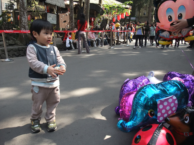 正要離開的時候,底迪盯著路邊的汽球攤似乎很有興趣,於是就買了個招牌妖怪給他。