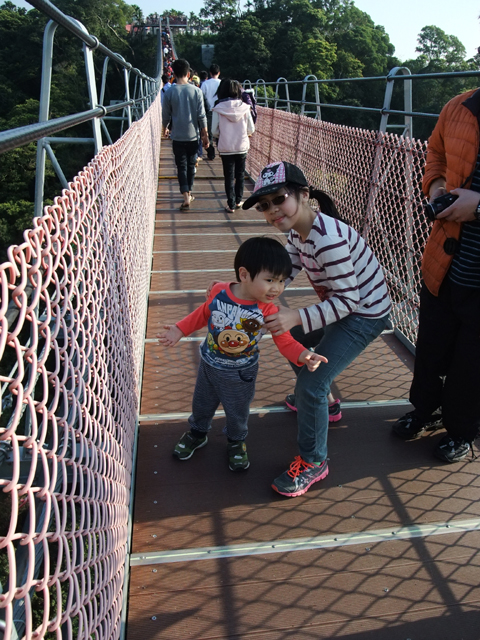這吊橋雖美稱天空之橋,不過實地望來卻沒啥意境,尤其眼下人潮密點串連的景況稱作螞蟻搭橋還比較適當。